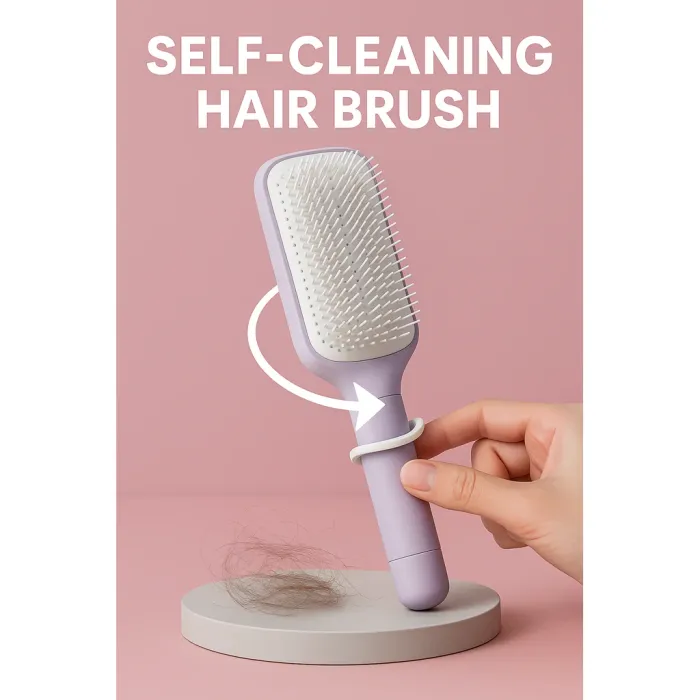 במקום לנער את המסרק ולגלות שיער בכל הבית — הכול נאסף ישר לתוך מסרק הניקוי ובסיבוב קטן נאסף ליד ולפח. נקי, מסודר, אלגנטי